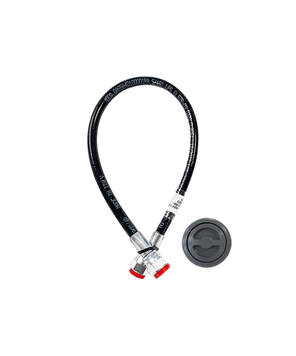 70mm Einfüllkörper mit Messing-Bajonettanschluss und 1,5 Meter Gaslow LPG Thermoplastic Füllschlauch.